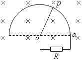 的光滑半圆形框架在匀强磁场中以角速度ω顺时针匀速转动,磁感应强度为B,
