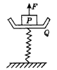 1、计算题 一根轻弹簧放在水平地面上,Q为与轻弹簧上端连在一起的秤盘,P为一重物,已知P的质量M=10.5 kg,Q的质量m=1.5 kg,弹簧的质量不计,劲度系数k=800 N/m,系统处于静止状态。如图所示,现给P施加一个竖直向上的力F,使它从静止开始向上做匀加速运动,已知在前0.2s时间内F为变力,0.2s后F为恒力。求F的最大值与最小值。(g取10 m/s2)