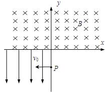 5、计算题 如图所示,在xoy平面内的第三象限中有沿-y方向的匀强电场,场强大小为E.在第一和第二象限有匀强磁场,磁感应强度为B,方向垂直于直角坐标平面向里。今有一个质量为m、电荷量为e的电子,从y轴的P点以初速度v0垂直于电场方向进入电场(不计电子所受重力)。经电场偏转后,沿着与x轴负方向成45°进入磁场,并能返回到原出发点P。