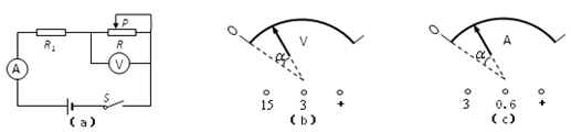 1、实验题  某同学利用图(a)所示的电路进行电路实验.电路中R1的阻值为20W,滑动变阻器R上标有“50W 2A”字样.闭合电键S,将滑片P从最左端向右移动到某位置时,电压表、电流表的示数分别为2伏和0.2安.当不断向右移动滑片P,使得电压表与电流表指针偏离零刻度线的角度恰好均为指针满偏角度的1/4时(两表满偏角度相同),如图(b)、(c)所示.则此过程中,两表指针偏转的方向相________(填