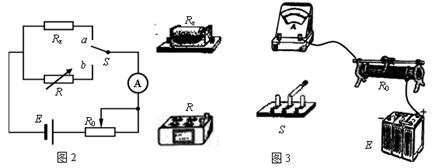 其所用器材有:滑动变阻器R0、电阻箱R、电流表A、电源E、单刀双掷开关S各一只,以及导线若干。以上器材均满足实验所需条件。