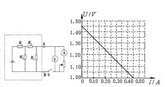 了研究它的输出特性,将电流表、电压表、滑动变阻器按图示的方式连接在它的输出端A、B之间。实验时根据记录的多组电流表示数I、电压表示数U,画出了如图所示的U—I图线。若将方框内的电路等效成电动势为E、内电阻为r的电源,则