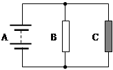 如果定值电阻B和元器件C并联后接在电源A两端时,B、C两端电压相等,通过的电流之和等于通过电源的电流,结合图线可知,当B两端取电压1V时,其电流为0.3A,再由表可知,C两端加电压为1V时通过的电流为0.15A,所以此时干路电流之和为0.3A+0.15A=0.45A,而对于电池而言,当电路中的电流为0.45A时,其路端电压也正好是1V,故所取的路端电压为1V正好合适。则此时通过B的电流为0.3A,器件C的电压为1V,电流为0.15A,所以其电功率为P=UI=1V×0.15A=0.15W。