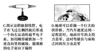 参考答案:C 本题解析:根据磁通量的定义, Φ=B·S·cosθ,因此AB选项错误;磁感应强度等于磁通量的变化率,所以穿过线圈的磁通量为零时,磁感应强度不一定为零;磁通量发生变化,可能是电场变化引起的,也可能是磁场变化引起的,D错。 本题难度:一般 4、选择题 (2010·海门测试)下列四幅图中涉及经典的物理实验研究,其中说法正确的是( ) 参考答案:BCD 本题解析:通电导线的周围有磁场,处在磁场中的小磁针要受到磁场力作用,若A图中导线有电流,小磁针要发生偏转,图景与实际不符,A项错误;B图中开关闭合,线圈中磁通量变化,产生感应电流,导致电流表的指针偏转;C图中电子在磁场中受到磁场力作用,用左手定则判断电子束将向下偏转;D图中汽车速度达到第一宇宙速度时,汽车环绕地球近地做圆周运动,处在车内的物体处于完全失重状态. 本题难度:简单 5、选择题 直流电源跟一个线圈连接成闭合回路,线圈的上方和右侧各有一个可以自由转动的小磁针,它们静止时如图所示,则下列判断正确的是 ? 参考答案:D 本题解析:小磁针静止时N极所指方向为该点磁场方向,由此可知通电螺线管右侧为N极,由右手螺旋定则可知电源的a端为负极,右侧小磁针被磁化后d端为N极,D对; 本题难度:简单 |