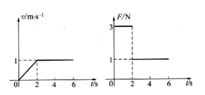 4、填空题 物体在水平地面上受到水平推力的作用,在6s内力F的变化和速度v的变化如图所示,则物体的质量和物体与地面的动摩擦因数分别为?、??
