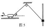 5、选择题 如图5所示,用一小车通过轻绳提升一货物,某一时刻,两段绳恰好垂直,且拴在小车一端的绳与水平方向的夹角为