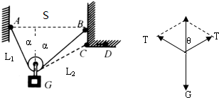 解:设A与B(C)间的水平距离为S,绳子长度为L.由于滑轮上张力处处大小相等,则平衡时,滑轮两侧绳子关于竖直方向对称.