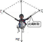 “儿童蹦极”中,拴在腰间左右两侧的是弹性极好的橡皮绳.质量为m的小明如图所示静止悬挂时,两橡皮绳的拉力 大小均恰为mg,若此时小明左侧橡皮绳在腰间断裂,则小明此时