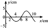 参考答案:根据波的图象知,波长等于8cm,振幅为5cm,周期T=λv=0.0812s=1150s.因为波向x轴正方向传播,根据上下坡法知,x=5cm质点向下振动.所以①④正确.故D正确,A、B、C错误.