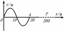 ![]() 参考答案:由图可知,要使P点第一次到达波峰,则两波均应传播5m, 本题解析: 本题难度:简单 2、计算题 一列横波在某时刻的波动图象如图所示,从此时开始d质点比c质点早0.1 s到达波谷,求: 参考答案:解:(1)此波沿x轴正向传播,波速v= 本题解析: 本题难度:一般 3、填空题 如图所示,一列沿+x方向传播的波,波速为100m/s,当t1=0时,振动只传播到A点,当t2=______s时,位于x=200m的P点第一次出现波峰,当t3______s时,P点第一次出现波谷. 参考答案:已知该波沿x轴正方向传播,波形向右平移,则知t=0时刻质点A的振动方向向下, 本题解析: 本题难度:简单 4、选择题 一列简谐机械横波在x轴上传播,在距离小于一个波长的x=0与x=2m处的两质点的振动图线分别如图中实线与虚线所示.由此可以得出( ) |