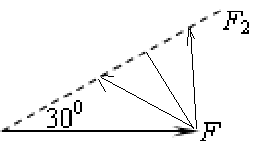 3、选择题 如图所示,分解一个水平向右的力F,F=6N,已知一个分力F1=4N和另一个分力F2与F的夹角为300,以下说法正确的是(?)