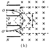 所以R= vi与中轴线的夹角为 在P、Q极板间,小球向Q板偏。设小球射入与射出磁场的两点间的距离为hb