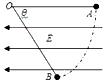 5、填空题 如图所示,在水平向左的匀强电场中,一根不可伸长的绝缘细线长度为L,一端拴一个质量为m电荷量为q的带负电小球,另一端固定在O点。把小球拉到使细线水平伸直的位置A然后将小球由静止释放,小球沿弧线运动到细线与水平方向成θ=60°的位置B时速度为零。则电场强度E=___________,小球运动过程中的最大速率为V=___________ 。