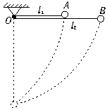 5、选择题 如图所示,一根长为l1的橡皮条和一根长为l2的绳子(l1<l2)悬于同一点,橡皮条的另一端系一A球,绳子的另一端系一B球,两球质量相等,现从悬线水平位置(绳拉直,橡皮条保持原长)将两球由静止释放,当两球摆至最低点时,橡皮条的长度与绳子长度相等,此时两球速度的大小为