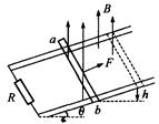 的斜面上,导轨的左端接有电阻R,导轨的电阻可忽略不计,斜面处在一匀强磁场中,磁场的方向垂直斜面向上。质量为 ,电阻可不计的金属棒ab,在沿着斜面与棒垂直的恒力F作用下沿导轨匀速上滑,并上升h高度,如图所示,在这个过程中(?)
