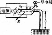 2、选择题 电磁泵在目前的生产、科技中得到了广泛应用。如图所示,泵体是一个长方体,ab边长为L1,两侧端面是边长为L2的正方形;流经泵体内的液体密度为ρ、在泵头通入导电剂后液体的电导率为σ(电阻率的倒数),泵体所在处有方向垂直向外的磁场B,把泵体的上下两表面接在电压为U(内阻不计)的电源上,则(?)