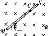 。磁感线水平指向纸里,如图所示,棒上套一个可在其上滑动的带负电的小球C,小球质量为m,带电量为q,球与棒间的动摩擦因数为