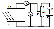 5、填空题 如图所示是测定光电效应产生的光电子比荷的简要实验原理图,两块平行板相距为d,其中N为金属板,受紫外线照射后,将发射沿不同方向运动的光电子,形成电流,从而引起电流计G的指针偏转,若调节R0逐渐增大极板间电压,可以发现电流逐渐减小,当电压表示数为U时,电流恰好为零。切断开关,在MN间加垂直于纸面的匀强磁场,逐渐增大磁感强度,也能使电流为零,当磁感强度为B时,电流恰为零。则光电子的比荷_______。