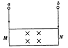 5、选择题 如图所示,一根有质量的金属棒MN,两端用细软导线连接后悬于a、b两点,棒的中部处于方向垂直纸面向里的匀强磁场中,棒中通有电流,方向从M流向N,此时悬线上有拉力,为了使拉力等于零,可以
