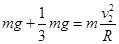 4、计算题 一内壁光滑的半环形细圆管竖直地固定在水平桌面上,其直径AB与桌面垂直,环的半径为R(比细管的半径大得多)。一个质量为m的小球(小球直径略小于细管直径且可视为质点)从管口A射入管中,从管口B射出时对管口壁的压力为mg/3。求小球在桌面上的落点到管口A的距离。
