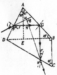 图中B为所求的偏向角,从图中几何关系可知