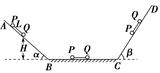 3、选择题 (2011年河南安阳质检)ABCD是一段竖直平面内的光滑轨道,AB段与水平面成α角,CD段与水平面成β角,其中BC段水平,且其长度大于L.现有两小球P、Q,质量分别是2m、m,用一长为L的轻质直杆连接,将P、Q由静止从高H处释放,在轨道转折处用光滑小圆弧连接,不考虑两小球在轨道转折处的能量损失.则小球P滑上CD轨道的最大高度h为( )