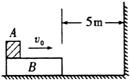5、计算题  在光滑水平面上静止放置一长木板B,B的质量为M=2kg,B右端离竖直墙5m,