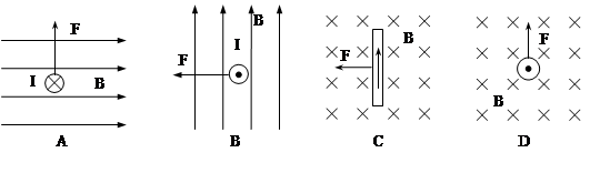 3、选择题 在下列各图中,分别标出了磁场B的方向,电流I的方向和导线所受安培力F的方向,其中正确的是(?)