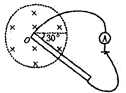 4、填空题 如图所示,长为1m的金属杆可绕转轴O在竖直平面内转动。方向水平的匀强磁场磁感应强度为2T,磁场边界为一圆形区域,圆心恰为O点,直径为1m,当电流表读数为0.6A时,金属杆与水平方向夹30°角,则此时磁场对金属杆作用力大小为?。