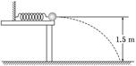 2、计算题 (8分)在高1.5 m的光滑平台上有一个质量为2 kg的小球被一细线拴在墙上,球与墙之间有一根被压缩的轻质弹簧。当烧断细线时,小球被弹出,小球落地时的速度方向与水平方向成60°角,则弹簧被压缩时具有的弹性势能为多大?(g=10 m/s2)