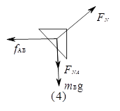 4、选择题 如图所示,在斜面上,木块A与B的接触面是水平的.绳子呈水平状态,木块A、B均保持静止.则关于木块A和木块B可能的受力个数分别为( )?
