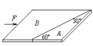 4、选择题 有一块长方体木板被锯成如图所示的A、B两块放在水平桌面上,A、B紧靠在一起,木板A的角度如图所示.现用水平方向的力F垂直于板的左边推木板B,使两块板A、B保持原来形状整体沿力F的方向匀速运动,则(?)