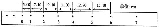 3、填空题 某同学利用打点计时器探究加速度与物体所受合外力及质量的关系,得到了如图所示的一条纸带,根据纸带可求出打下B点时小车的速度大小为?,小车的加速度大小为?(保留两位有效数字)。