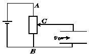 4、选择题  如图所示,平行板电容器的一个极板与滑动变阻器的滑动端C相连接,平行板电容器两极板间距为d。电子以速度v0从平行板电容器左侧极板正中间垂直于电场线方向射入,从平行板电容器右侧距上极板 处离开电场,即沿电场方向偏移的位移y=