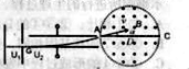 2、选择题  如图所示,一电荷量为q,质量为m的带正电粒子,经过水平方向的加速电场U,沿水平方向进入竖直方向的偏转电场U2,已知粒子从偏转电场下极板最左端的G点进入,恰从上极板最右端A点离开偏转电场,立即垂直射入一圆形区域的均强磁场内,AC是圆形磁场区域的一条沿水平方向的直径。粒子速度方向与AC成 角,已知圆形区域的直径为D、磁感应强度为B,磁场方向垂直于圆平面指向外,
