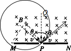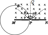 4、选择题 如图所示,MN是一荧光屏,当带电粒子打到荧光屏上时,荧光屏能够发光.MN的上方有磁感应强度为B的匀强磁场,磁场方向垂直纸面向里,P为屏上的一小孔,PQ与MN垂直.一群质量为m、带电荷量q的粒子(不计重力),以相同的速率v,从P点沿垂直于磁场方向射入磁场区域,其入射方向分布在以PQ为中心,夹角为2θ的范围内,不计粒子间的相互作用,以下说法正确的是(?)
