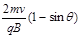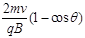 正粒子沿着右侧边界射入,轨迹如上面左图,此时出射点最近,与边界交点与P间距为:2rcosθ;