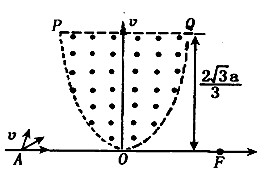。且方程对称y轴,在坐标x轴上A处有一粒子源,向着不同方向射出大量质量均为m、电量均为q的带正电粒子,所有粒子的初速度大小相同均为v,粒子通过有界的匀强磁场后都会聚焦在x轴上的F点.已知A点坐标为(-a,0),F点坐标为(a,0).不计粒子所受重力和相互作用求:
