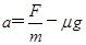 本题解析:物体在水平面上运动时,受水平拉力F、重力mg、水平面的支持力N和滑动摩擦力f作用,根据牛顿第二定律,在水平方向上有:
