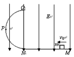 3、计算题 如图所示,在E=103V/m的竖直匀强电场中,有一光滑的半圆形绝缘轨道QPN与一水平绝缘轨道MN连接,半圆形轨道平面与电场线平行,P为QN圆弧的中点,其半径R=0.4m,一带正电q=10-4C的小滑块质量m=0.01kg,与水平轨道间的动摩擦因数μ=0.15,位于N点右侧1.5m处,要使小滑块恰能运动到圆轨道的最高点Q,则滑块应以多大的初速度v0向左运动?取g=10m/s2。