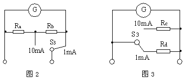 (2)将G改装成两量程电流表。现有两种备选电路,示于图2和图3。图___________为合理电路,另一电路不合理的理由是___________。