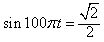 ,在正半周有两个解就是:t1=0.0025s,t2=0.0075 s,在正半周的时间为△t=t2-t1=0.005s