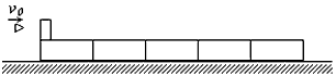 3、计算题 如图所示,五块完全相同的长木板依次紧挨着放在水平地面上,每块木板的长度为L=0.5m,质量为M=0.6 kg。在第一块长木板的最左端放一质量为m=0.98kg的小物块。已知小物块与长木板间的动摩擦因数为μ1=0.2,长木板与地面间的动摩擦因数为μ2=0.1,设最大静摩擦力与滑动摩擦力相等。一颗质量为m0=0.02kg的子弹以υ0=150m/s水平速度击中小物块并立即与小物块一起在长木板表面滑行,重力加速度g=10m/s2。