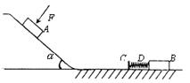 3、简答题 如图所示,粗糙斜面与光滑水平面通过半径可忽略的光滑小圆弧平滑连接,斜面倾角α=37°,A、B是两个质量均为 m=1㎏的小滑块(可视为质点),C为左端附有胶泥的质量不计的薄板,D为两端分别连接B和C的轻质弹簧.薄板、弹簧和滑块B均处于静止状态.当滑块A置于斜面上且受到大小F=4N,方向垂直斜面向下的恒力作用时,恰能向下匀速运动.现撤去F,让滑块A从斜面上距斜面底端L=1m处由静止下滑,若取g=10m/s2,sin37°=0.6,cos37°=0.8.