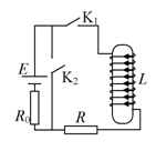 5、选择题 图中L是绕在铁心上的线圈,它与电阻R、R0、电键和电池E可构成闭合回路.线圈上的箭头表示线圈中电流的正方向,当电流的流向与箭头所示的方向相同,该电流为正,否则为负.电键K1和K2都处于断开状态.设在t=0时刻,接通电键K1,经过一段时间,在t=t1时刻,再接通电键K2,则能正确表示L中的电流I随时间t的变化图线的是:(? )