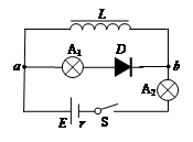 5、选择题 如图所示,A1、A2 为两只相同灯泡,A1与一理想二极管D连接,线圈L的直流电阻不计.下列说法正确的是
