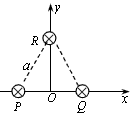 4、选择题 如图所示,三根通电长直导线P、Q、R互相平行,垂直纸面放置,其间距均为a,电流强度均为I,方向垂直纸面向里(已知电流为I的长直导线产生的磁场中,距导线r处的磁感应强度B=kI/r,其中k为常数)。某时刻有一电子(质量为m、电量为e)正好经过原点O,速度大小为v,方向沿y轴正方向,则电子此时所受磁场力为