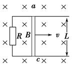 ![]() 3、选择题 两根足够长的光滑导轨竖直放置,间距为L,底端接阻值为R的电阻。将质量为m的金属棒悬挂在一个固定的轻弹簧下端,金属棒和导轨接触良好,导轨所在平面与磁应强度为B的匀强磁场垂直,除电阻R外其余电阻不计。现将金属棒从弹簧原长位置由静止释放,则 4、简答题 半径为r=0.4m的圆形区域内有均匀磁场,磁感应强度B=0.2T,磁场方向垂直纸面向里.边长为L=1.2m?的金属正方形框架ABCD在垂直磁场的平面内放置,正方形中心与圆心O重合.金属框架AD与BC边上分别接有L1、L2两灯,两灯的电阻均为R=2Ω,一金属棒MN平行AD边搁在框架上,与框架电接触良好,棒MN的电阻为每米0.5Ω,框架ABCD的电阻均忽略不计. 5、计算题 (10分)如图所示,水平放置的两平行金属导轨相距L=0.50 m,左端接一电阻R=0.20 Ω,磁感应强度B=0.40 T的匀强磁场方向垂直于导轨平面向下,长也为0.50 m的导体棒ac垂直放在导轨上,并能无摩擦地沿导轨滑动,导轨和导体棒的电阻均可忽略不计.当ac棒以v=4.0 m/s的速度水平向右匀速滑动时,求: |