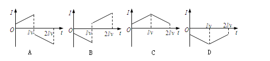 1、选择题 直角梯形线框abcd如左图所示,ab与cd间的距离为l。两条平行虚线之间存在匀强磁场,虚线间的距离也为l,磁场方向垂直纸面向里,其左侧虚线恰好与ab边相切。现令线圈以恒定的速度v沿垂直于磁场区域边界的方向穿过磁场区域。取沿a→b→c→d→a的感应电流为正,则在线圈穿越磁场区域的过程中,感应电流I随时间t变化的图线可能是下图所示的?(?)