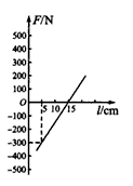 1、填空题 在探究弹力与弹簧伸长量之间关系的实验中,由实验测得弹簧弹力F与长度l 的关系如图所示,则该弹簧的原长l0=_________ cm,劲度系数k=__________N/m.